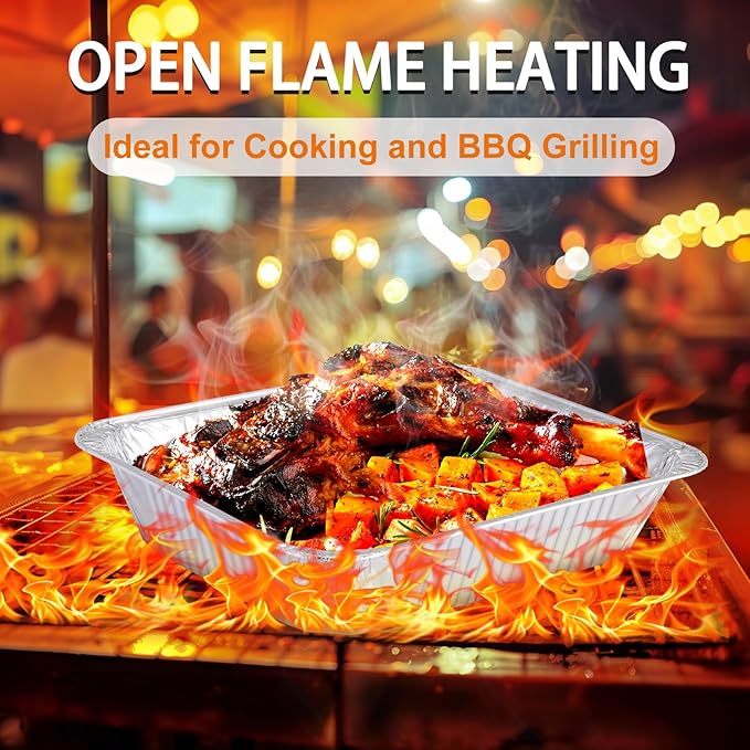 - Heavy Duty & Durable – Made from lightweight, thicken and premium aluminum foil, equip with superior heat conductivity for even baking, roasting & reheating. These aluminum pans are sturdy and resist bending, warping, and leaks, ideal for juicy meats, saucy casseroles, and messy BBQ dishes. Our foil tray can meet any culinary need with ease