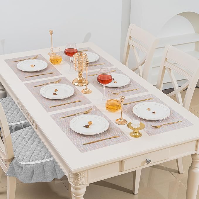 - π¬πππππππππ ππ πͺππππ & π΄πππππππ: Designed for convenience, these wipeable and washable placemats make cleanup a breeze. Simply wipe spills with a damp cloth or rinse under water (Dishwasher-proof). The stain-resistant vinyl material ensures long-lasting freshness, making them ideal for busy households. Whether used as table placemats for daily meals or special occasions, they stay looking pristine with minimal care.