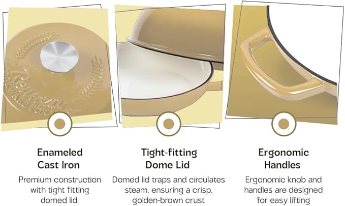 - BAKE LIKE A PRO - Renaza’s enameled cast iron bread oven is designed to deliver a beautifully crisp, golden crust and a soft, flavorful interior. The domed, tight fitting lid captures steam, allowing your bread to rise to perfection