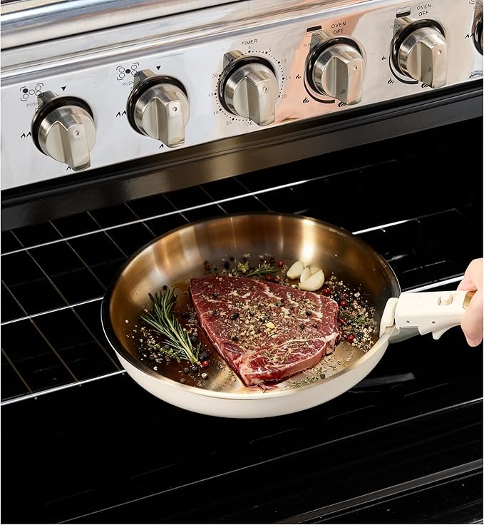 - 2. Oven-to-Table Versatility: Oven safe to 600°F (handles removed), seamlessly transition from stovetop to oven or fridge. Tri-ply base-to-rim ensures even heating for perfect roasts & bakes.