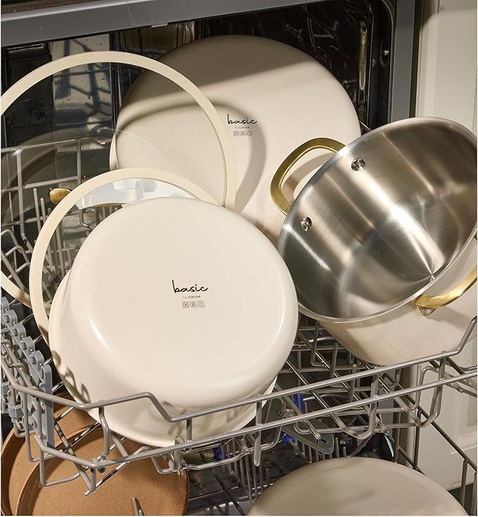 - 3. Dishwasher Safe & Effortless Cleaning: Outer ceramic layer resists stains and is dishwasher friendly. Rivet-free interior prevents food trapping for hassle-free maintenance.