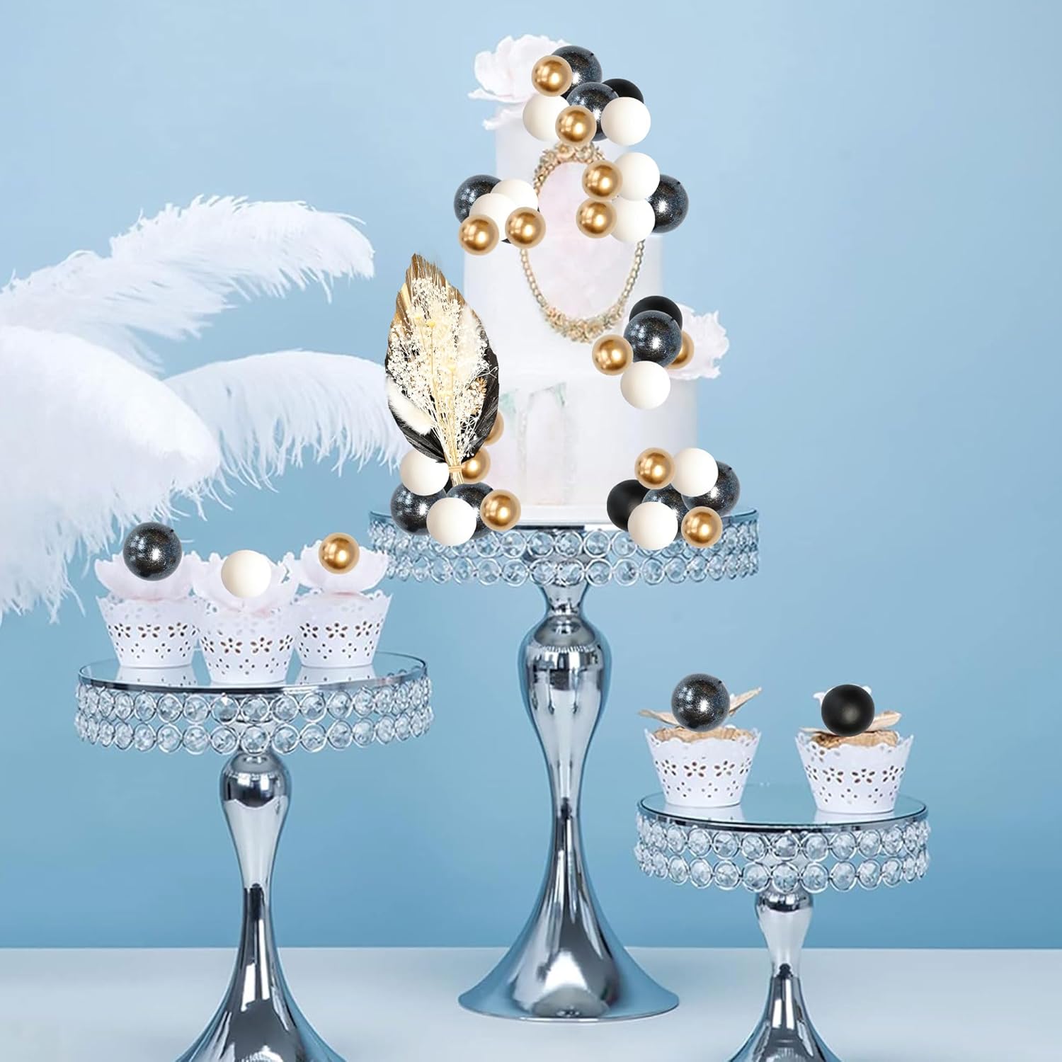 Gyufise 21 Pack Flower Boho Cake Topper Ball Cake Decorations Palm Leaves Plants Cake Decor for Girl Bohemian Princess Theme Wedding Baby Shower Birthday Party Supplies Black Gold