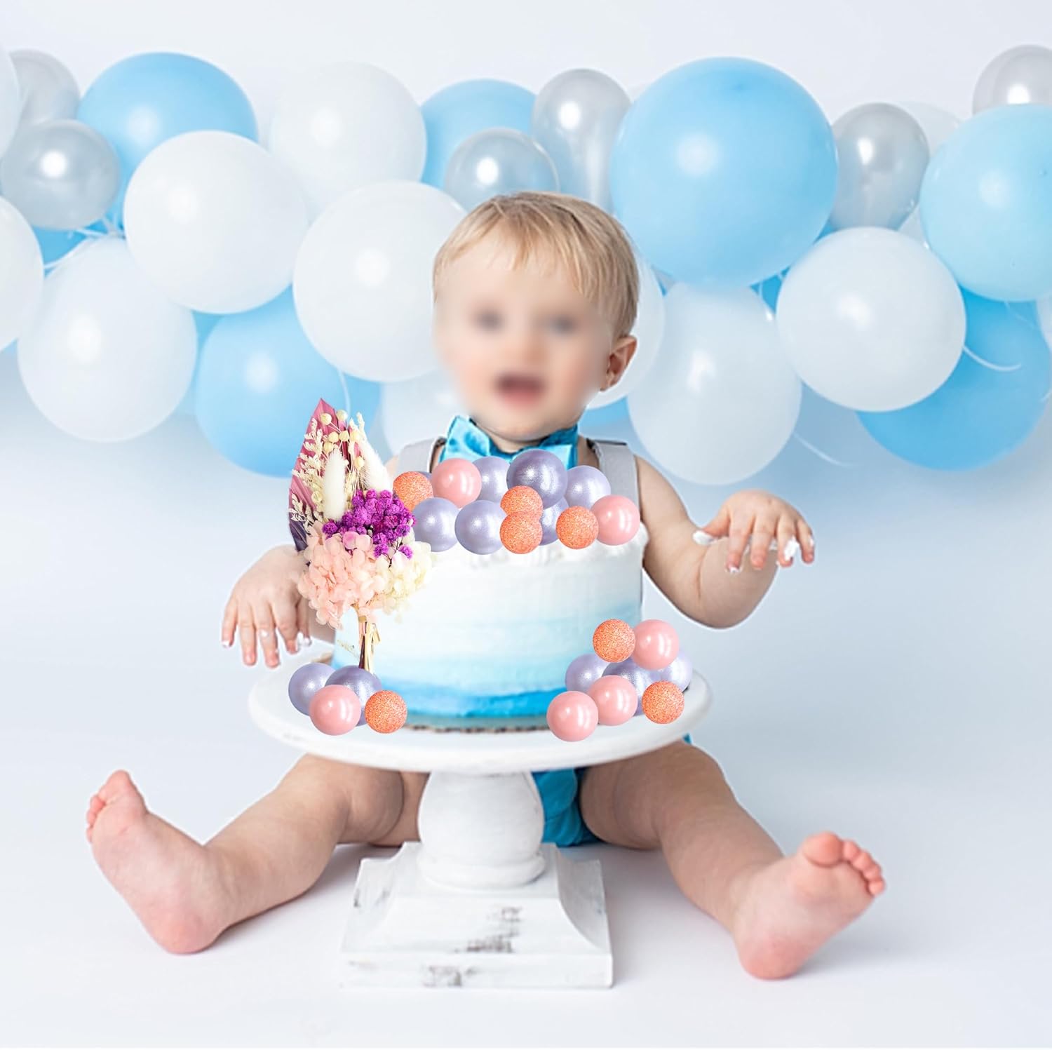 Gyufise 21 Pack Flower Boho Cake Topper Ball Cake Decorations Palm Leaves Plants Cake Decor for Girl Bohemian Princess Theme Wedding Baby Shower Birthday Party Supplies Pink Purple