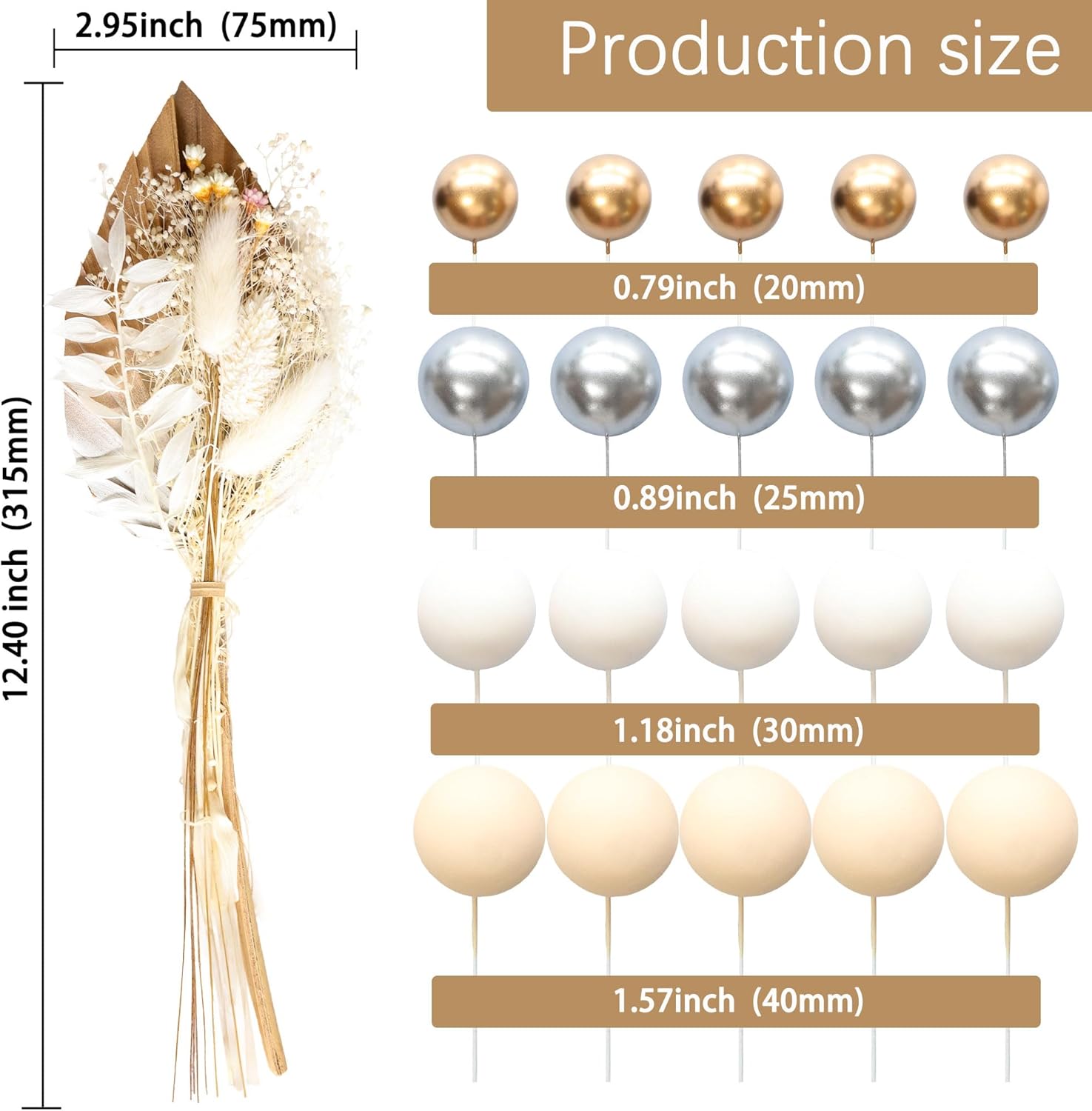- -Package included: 1Pc Flower Palm Leaf Cake Topper + 20Pcs Ball Cake Toppers. Size as the picture shows. These Flower Palm Leaf Cake Toppers are so chic and funny that make your boho party a big hit.