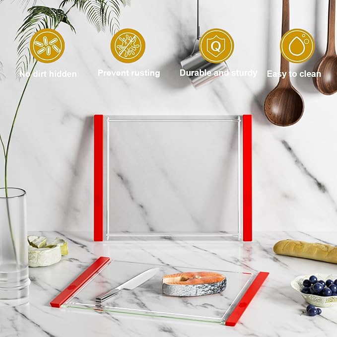 - 1.Food-Grade Safety: Our glass cutting board is made of sturdy tempered glass, which is resistant to shattering