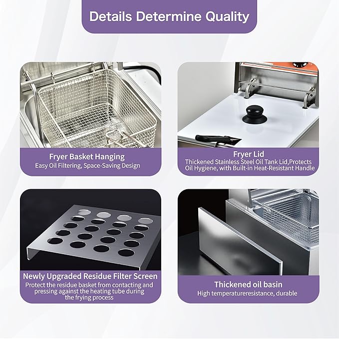 - Fuel-saving: Reduce oil consumption without affecting output. No need to worry about discarding the remaining oil. Durable 304 stainless steel oil tank: Dishwasher safe, detachable and easy to clean. Easy to maintain: Unique flip-top fryer head for convenient drainage; Detachable fryer head and oil tank for easy cleaning.