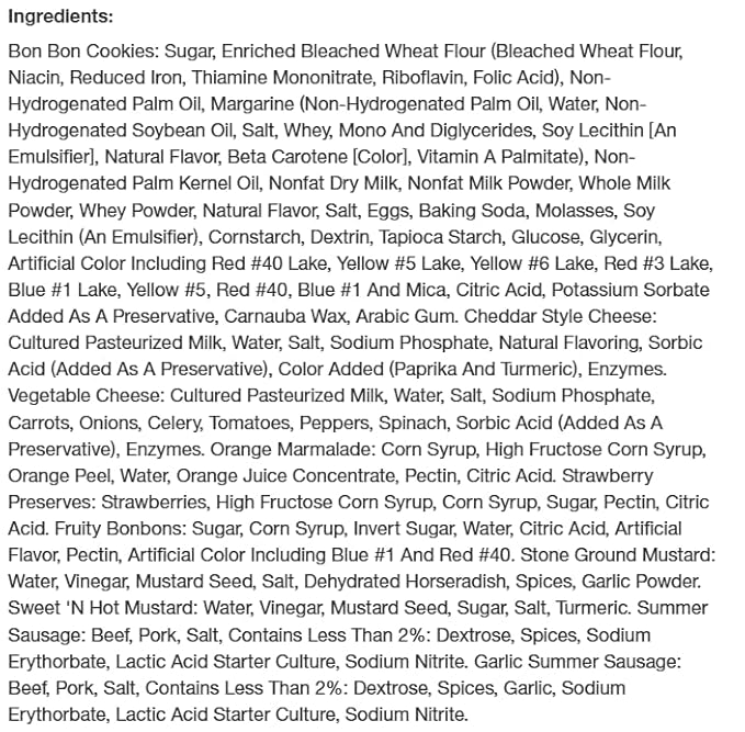 - PREMIUM INGREDIENTS: Features 2 oz cookies, 1.5 oz preserves and marmalade, 1.4 oz mustards, and 1-5/8 oz sausages—all crafted for freshness and flavor.