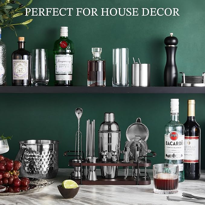 - Stay Organized and Look Good Doing It: Say goodbye to messy counters! The wooden stand is both practical and chic, keeping your bar tools set neat, tidy, and ready to grab. Its minimalist design blends seamlessly into any home mini bar setup, making it as much a decor piece as a storage solution.
