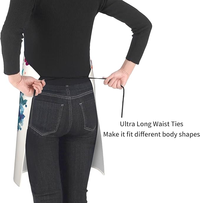 - 【STANDARD SIZE】 The colorful painting apron for adult is 28W x 33L Inch(70W x 84L cm), Unisex, suitable for men and women with adjustable neck straps and long ties.