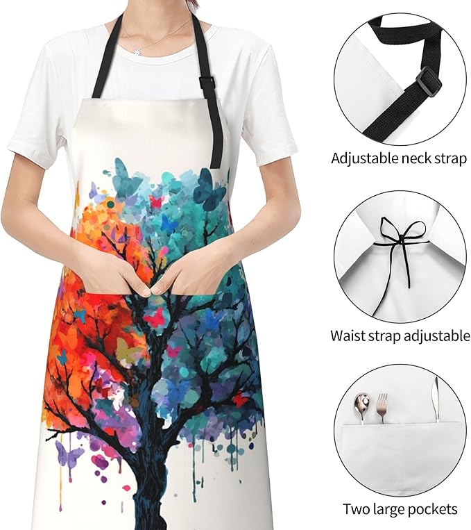 - 【QUALITY MATERIAL】 The tree kitchen apron with pockets is made of polyester & blend fabric, water resistant, safe for your family and environment friendly.