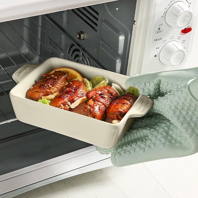 - 【Stylish Rectangular Baking Dish】The rectangular baking dish is equipped with a double handle design for easy food transport from the oven to the table. It is also a charming decoration in your kitchen and dining table which may impress your guests!