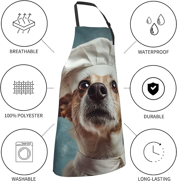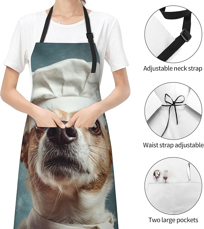 - 【MUTI-PURPOSE】 The puppy pet apron with pockets for women can be used as barbecue apron, kitchen apron, cooking apron, chef apron, restaurant apron, baker apron, barista apron, gardening apron, BBQ apron, DIY or painting apron. It also can be a nice gift for Valentine's Day, Wedding Anniversary, Father's Day and Mother's Day, Thanksgiving etc.