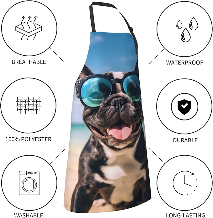 - 【EASY CARE】The French bulldog apron for cooking is easy to wash, machine and hand wash is workable, which is fadeless and won't pill or shrink. Dry naturally is best.