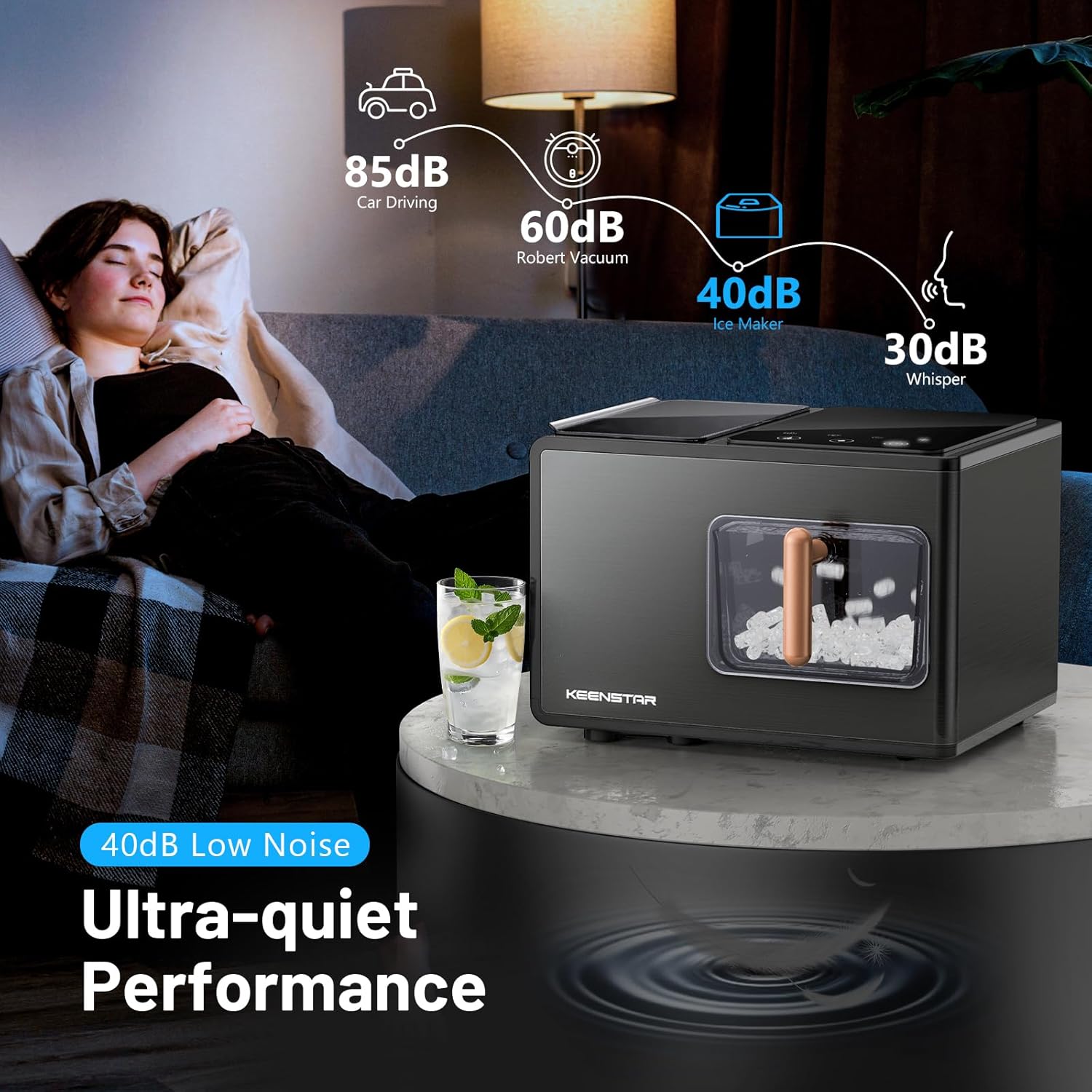 - Chewable & Slow-melting Clear Ice: With advanced technology, Keenstar nugget ice maker produces the softest, crunchiest, and most chewable ice. The pellet ice cube retains its flavor and tastes good, which is different from traditional hard cubes of full cube or bullet ice. Optimizes melting speed, and absorbs flavors of cocktails and other beverages.