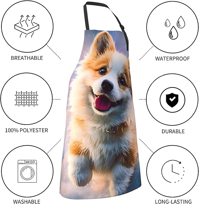 - 【QUALITY MATERIAL】 The corgi apron is made of polyester & blend fabric, water resistant, safe for your family and environment friendly.