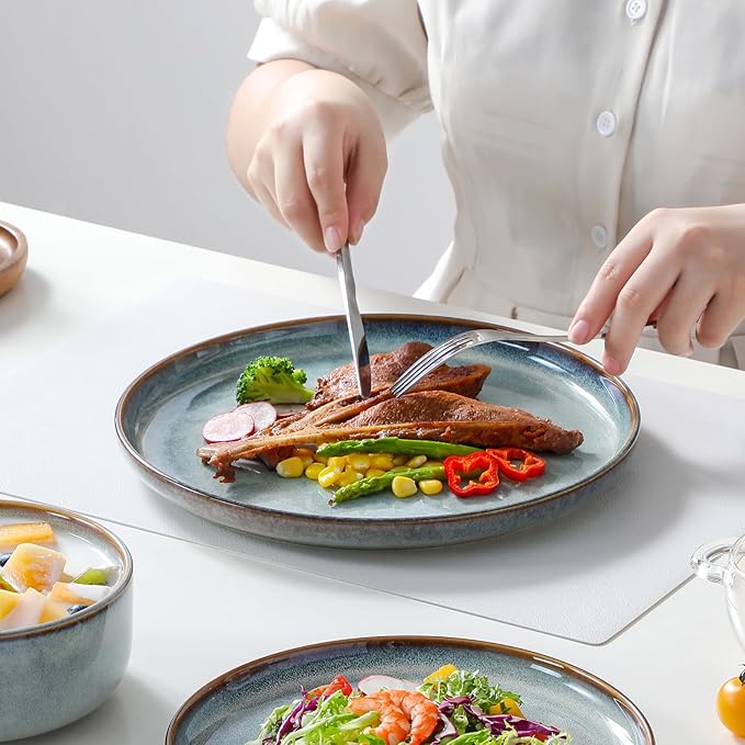 - 【Unique Reactive-Glazed Artistry】Crafted using an intricate reactive-change glazing process, each piece undergoes a stunning transformation in the high-temperature reaction, creating one-of-a-kind color variations and patterns. No two plates or bowls are exactly alike, making every set uniquely beautiful.