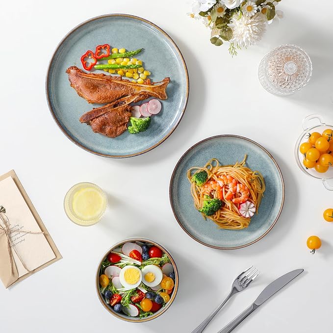 - 【Dinnerware set for 6】 Includes 6 dinner plates (10.25"), 6 salad plates (8.25"), and 6 bowls (26oz), perfect for serving everyday meals or special occasions.