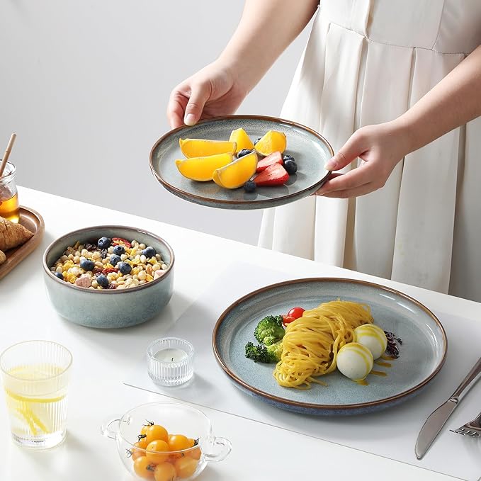 - 【Unique Reactive-Glazed Artistry】Crafted using an intricate reactive-change glazing process, each piece undergoes a stunning transformation in the high-temperature reaction, creating one-of-a-kind color variations and patterns. No two plates or bowls are exactly alike, making every set uniquely beautiful.