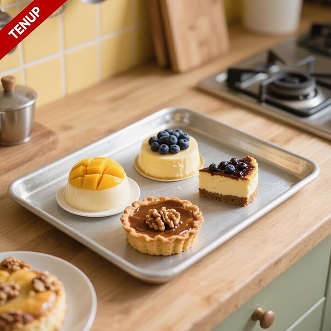 - Commercial-Grade Durability: Crafted from 18-gauge aluminum alloy with reinforced steel rim, our baking sheet resists warping and withstands high-heat ovens up to 500°F