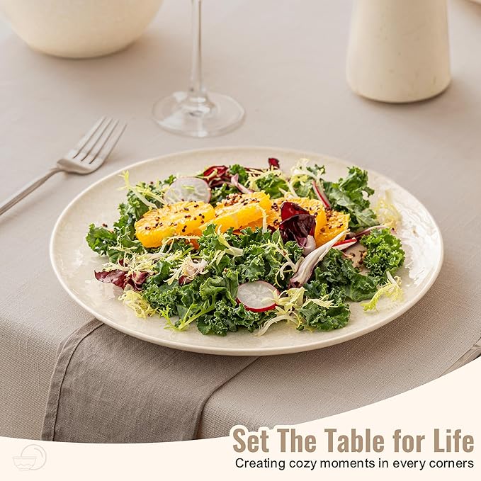 - 12-PIECE DINNERWARE SETS: Comes with 4 large round dinner plates 10.5”, 4 proper size salad plates 8”, 4 round cereal bowls 23 oz, Ideal for gathering serving and more