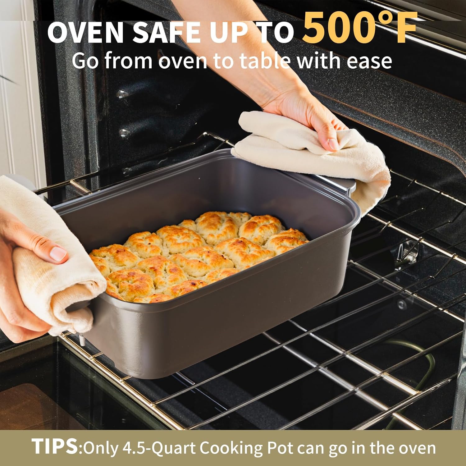 - Oven Safe up to 500°F: The 4.5-quart cooking pan is oven safe up to 500°F for a crispy texture (other pans, such as griddle grill pan, will not fit in the oven). Easily transfer the pan from the oven to the table (requires an insulating mat purchased separately to avoid heat damage)