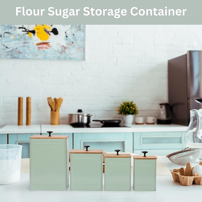 PERFNIQUE Kitchen Canisters, Airtight Canister Sets of 4 for Kitchen Counter, Sage Green Kitchen Accessories, Coffee Tea Sugar Flour Spice Tin Jars Food Storage (Sage Green)