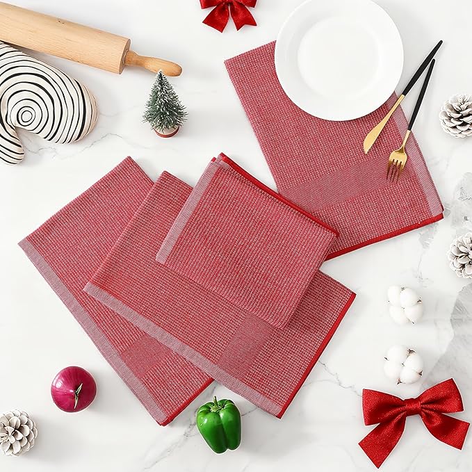 Homaxy Premium Kitchen Towels(18”x 28”, 8 Pack), Large Cotton Kitchen Hand Towels, Flat and Terry Dish Towels, 380 GSM Highly Absorbent Tea Towel Set with Hanging Loop, Red