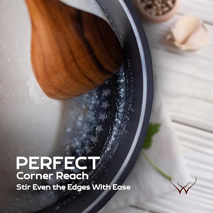 Corner Wooden Spoon for Cooking 12” Long Handle - Cooking Utensils Set for Women & Chefs, Elegant Wooden Kitchen Utensil Set with Rest, Essential Wooden Utensil Set for Kitchen & Perfect Gifts