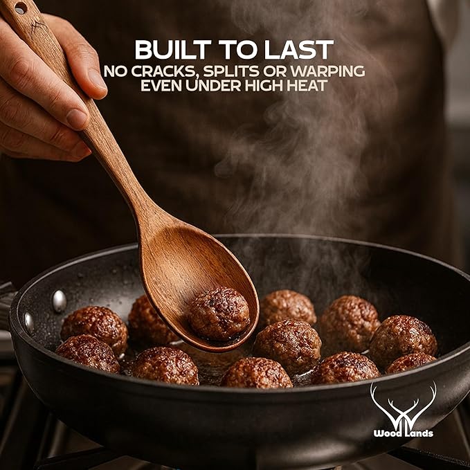 - ✔️ Built to last — Teak wooden utensil set resists heat and warping, perfect for long-lasting cooking utensil sets.