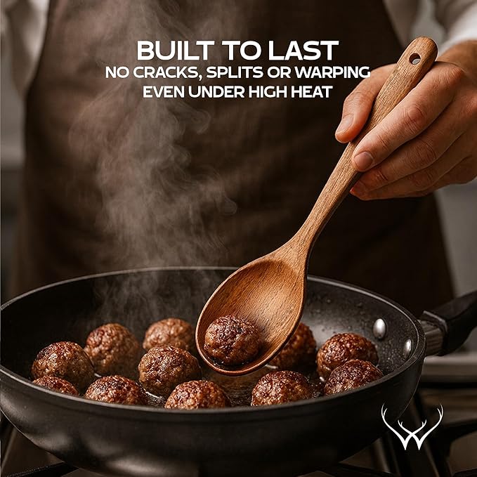 - ✔️ Smooth & gentle — Wooden spoon for cooking won’t scratch cookware, safe for all pots, pans, and non-stick surfaces.