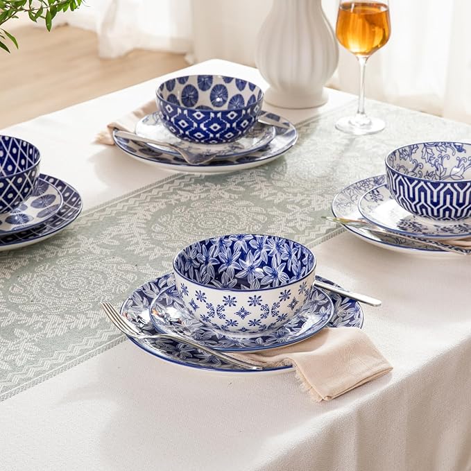 - Exquisite Handmade Vintage Blue Design: Adorned with vintage blue floral patterns for timeless elegance. The bowl set showcases unique designs inside and out, while the plate set features full coordinated artwork inside. Each piece of the dinnerware set carries subtle variations, giving your set artisanal charm.