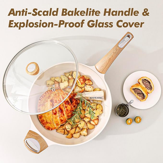 - Naturall Nonstick - Ceramic non-stick is healthier than Teflon coating! Scratch-resistant with excellent food release. Only less oil is needed for cooking, for a healthy, low-fat diet.