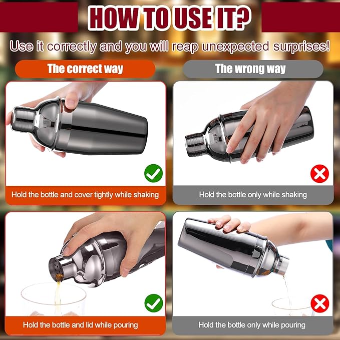 - Ideal for Beginners: the drink shaker is suitable for beginners looking to explore the process of cocktail making; It offers an insulation design keeping the ice intact and allows you to enjoy a refreshing cold drink for hours, showing the process of adding ingredients into your shaker and ensures an effortless, smooth flow when pouring your cocktail, ensuring that you can enjoy the process of crafting your cocktails