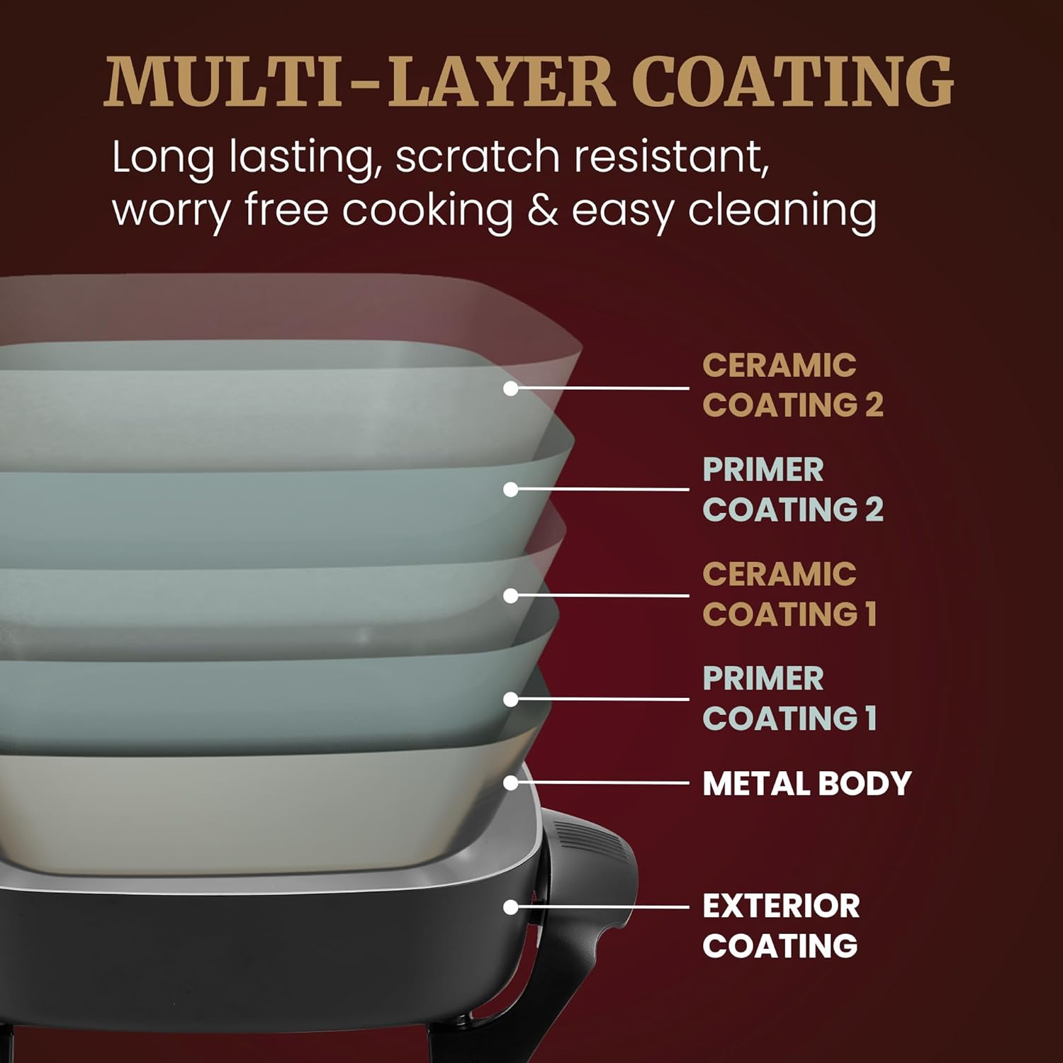 - EASY TO CLEAN: After use, simply remove the temperature probe and place the skillet and lid in the dishwasher. The heavy-duty cast aluminum body resists warping and corrosion, ensuring long-lasting performance.