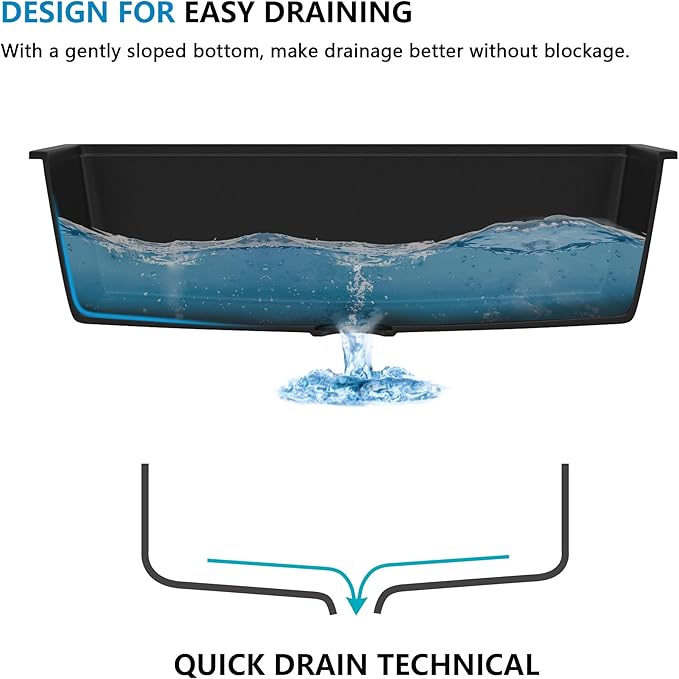 - 〓 Superior granite quartz composite sink is durable, strong, heat resistant and can withstand high temperature cookware. Natural quartz stone allows direct contact with food without contaminating it, truly food grade sink. High-end black kitchen sink is rich and stable in colour, not easy to darken or fade over time, cool matte black can hide stains without looking dirty.
