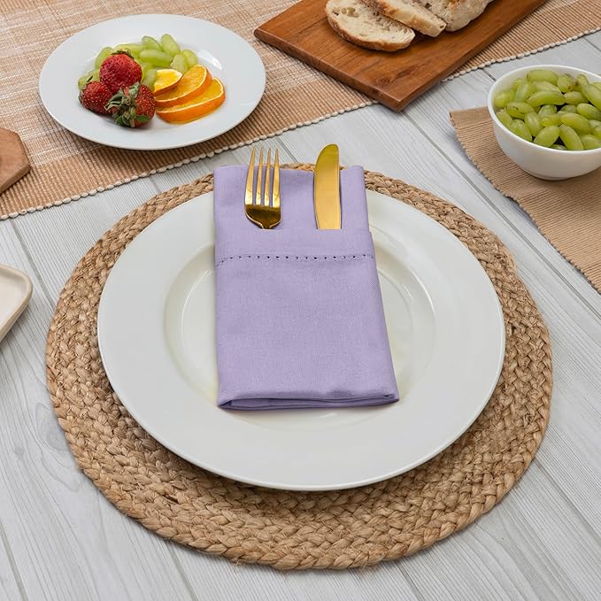 Blue Needles Set of 6 Hemstitch Linen Napkins 100% Cotton Lavender Cloth Dinner Napkins 18x18 inches, Soft, Reusable, Absorbent, Washable, Ideal for Fall Thanksgiving Events, Parties & Everyday Use