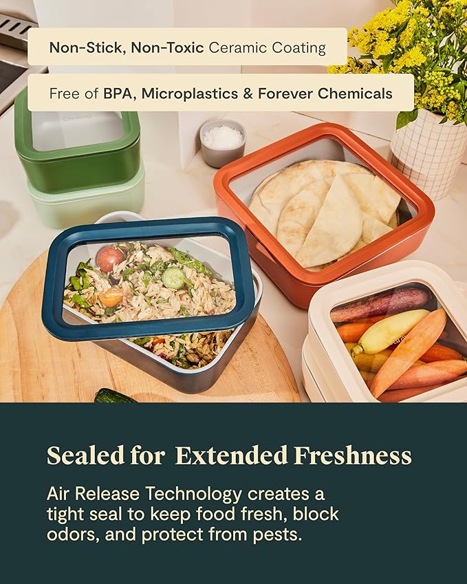 - NON-TOXIC & ECO-FRIENDLY MATERIALS: With a ceramic-coated surface, these containers are free from BPA, PFAS, and other harmful chemicals, ensuring safe and sustainable food storage