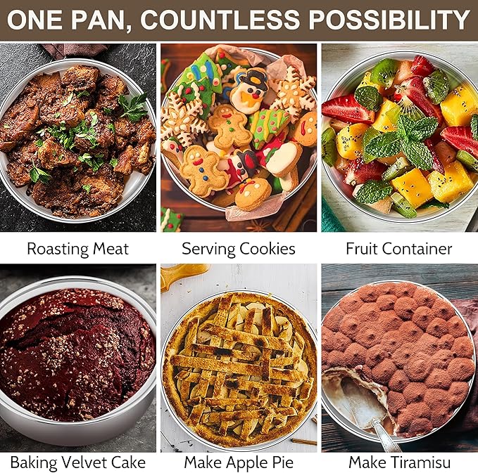 - Sturdy cake pan, solid stainless steel baking pan with flat bottom transfers heat quickly and bakes evenly, sturdy construction resists warping or chipping,2-inch straight sides allow you to make stacked cakes and cut easily