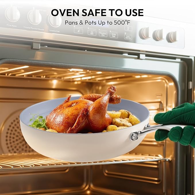 - 👍【100% Non-Toxic & Eco-Friendly】 ✔PFOA/PTFE/lead/cadmium-free ceramic coating ✔ No harmful chemicals leaching into food ✔ FDA-compliant & food-grade safety standards ✔ Eco-conscious choice for health-focused families
