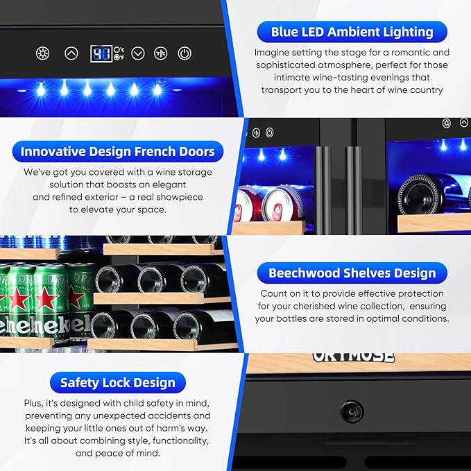 - EASY TEMP CONTROL, ALWAYS ON - Take full control of your wine cooler's settings with the intuitive smart control panel. The panel is easy to use and features a blue LED light that not only adds a stylish element but also makes it convenient to adjust the temperature and other settings, even in low-light conditions. One of the standout features of this beverage fridge is its memory function. It remembers your preferred temperature settings, so you don't have to reset them every time you turn the refrigerator on or after a power outage. This ensures that your wines and beverages are always stored at the perfect temperature, ready to be enjoyed whenever you are