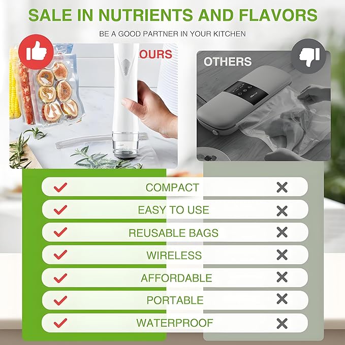 - Spill-Proof Magic for Liquids & Sauces:No more messy spills! Our auto-seal tech stops suction at -40kPa, so you can safely seal soups, marinades, or juicy meals. The clear water tank warns you before overflows—keep your kitchen (and sanity) clean!