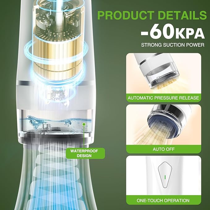 - Tiny But Mighty:60kPa Suction, 2lbs, Wireless. No clunky machines! This handheld powerhouse sucks air fast, weighs less than 2lbs, and runs 80 mins on USB-C. Take it anywhere—kitchen counter, RV adventures, or tailgate parties.