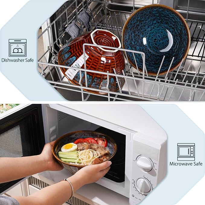 - Right Size for Noodles: With a diameter of 8 inches and a capacity of 50 oz. The soup bowl ensures ramen toppings and delicious soup sit securely inside without spilling. These noodle bowls are microwave, oven, freezer and dishwasher safe.