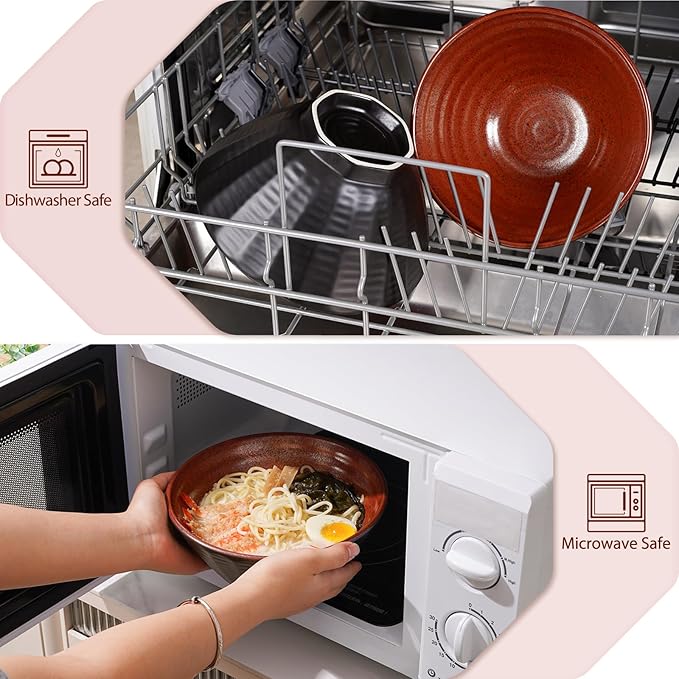 - Durable & Safe: These ramen bowls are made of premium ceramic clay and glaze, which is free of lead and cadmium. Non-porous surface does not absorb food odors, stains or any impurities. Never worry about toxic chemicals leaching into your food. Much healthier and safer than melamine.
