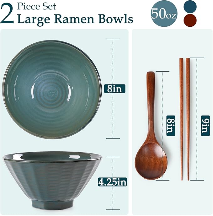 - Ideal Gift Choice: Two ramen bowls are accompanied by 2 spoons and two pairs of chopsticks, which are made of Machilus. Itβs a lovely gift for housewarming, wedding party, birthdays, holidays, or anniversaries or for anyone who enjoys ramen.