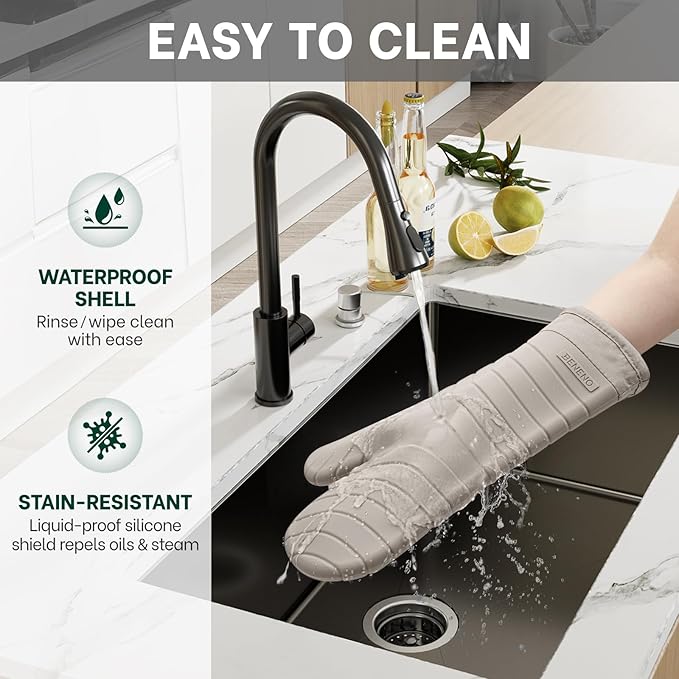 - Superior Heat Resistant & Waterproof: Crafted with high-quality BPA-free soft silicone, these oven mitts provides superior heat resistant up to 500°F with reliable waterproof shell for repels heat, steam and hot liquid, ensuring safely handling hot baking sheets, grill pans, and cookware straight from the oven or stovetop, no more burn risk of hot liquids, gravies or sauces