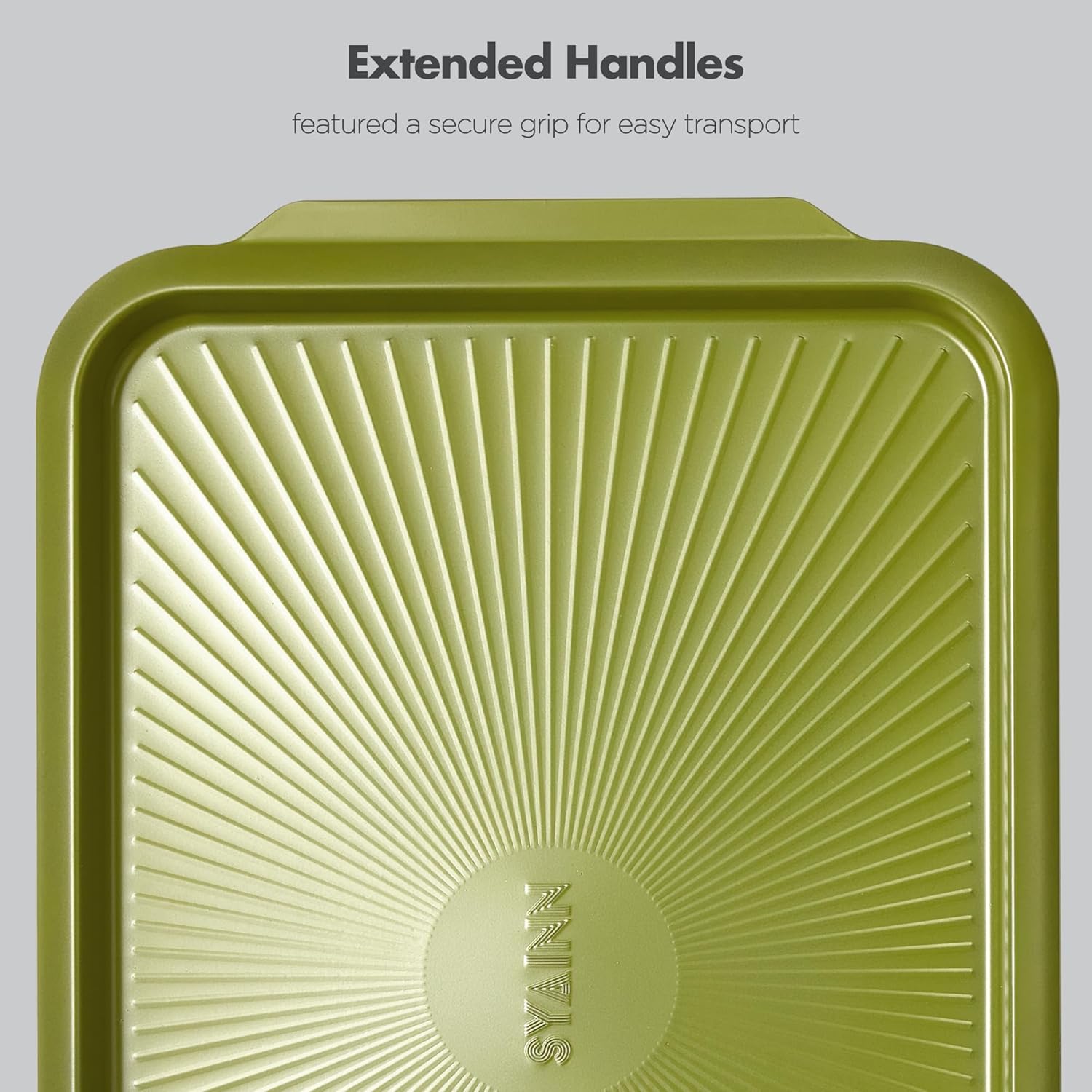 - Inspired by Retro-futurism - This oven pan features sleek, vintage curves and trendy matte colors, making it a stylish addition to your baking journey. The wide-edge folded handles ensure easy grip while saving storage space. The sun texture pattern on the base encourages airflow below the food. Rolled edges help keep it fairly warp-resistant when exposed to high heats and sudden temperature changes.
