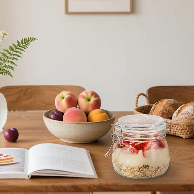 17oz Airtight Glass Jars with Lids, Set of 6 Small Food Storage Containers & Canisters, Clear Mason Jars with Wire Clip Seal for Canning, Pickling & Kitchen