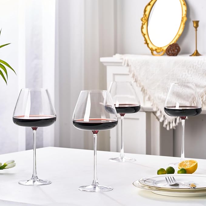 23.5OZ Crystal Wine Glasses Set of 4 for Pinot Noir, Burgundy, Bordeaux, Large Lead-Free Crystal Glasses with Unique Bottom Design