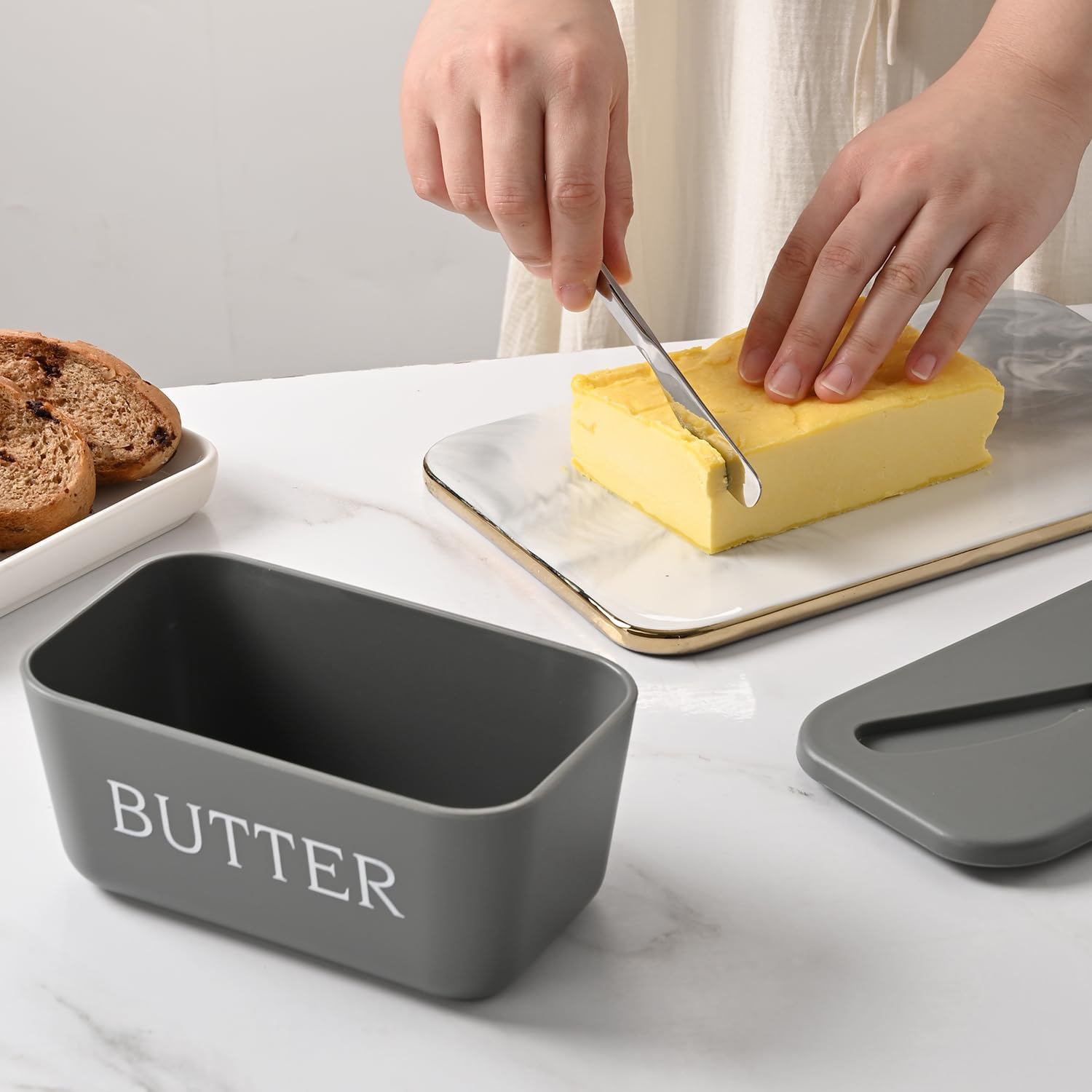 - πͺ Includes Stainless Steel Butter Knife β Comes with a durable, rust-resistant butter knife that fits neatly on or inside the lid for easy access.